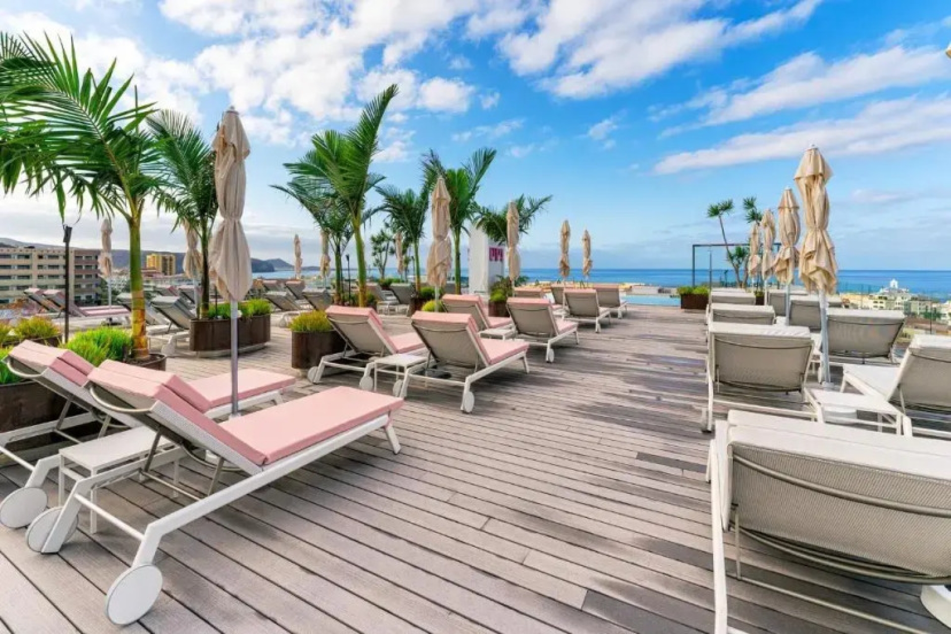 ✅ Idyllic pool complex complete with loungers, palm trees, umbrellas,s and a bar